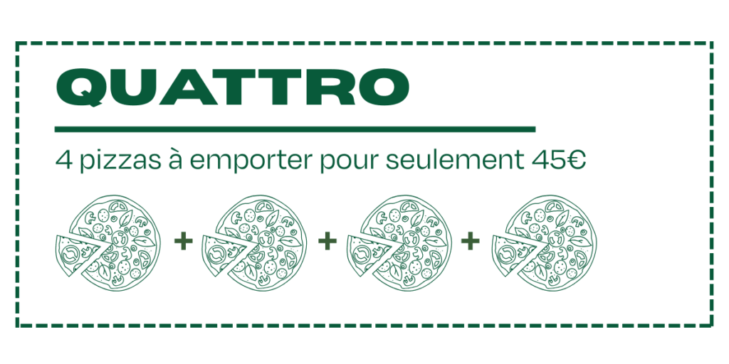 Nos pizzas sont disponibles à emporter, avec des offres exclusives réservées à nos clients. Vous pouvez commander directement par téléphone et venir les récupérer sur place. Elles seront bientôt disponibles sur Uber Eats.